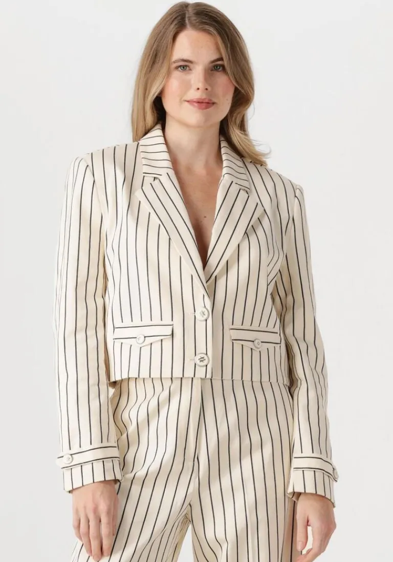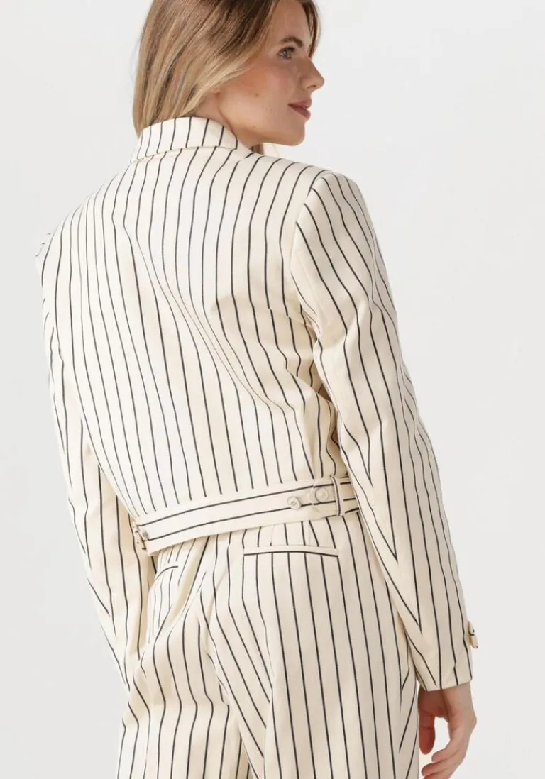 Ontdek de stijlvolle INES STRIPE CO 570 jas van AAIKO. Deze gebroken witte blazer is perfect voor dames die houden van een tijdloze en elegante look. Draag ‘m tijdens een ontspannen wandeling in het park of een gezellige lunch met vrienden. De subtiele strepen geven een speelse twist aan je outfit. Combineer deze jas moeiteloos met een donkere jeans en een paar stoere enkellaarsjes voor een casual-chique uitstraling. Of ga voor een meer verfijnde look met een zwarte midi-rok en een paar elegante pumps. Deze blazer is een veelzijdige toevoeging aan je garderobe en zorgt altijd voor een stijlvolle verschijning.