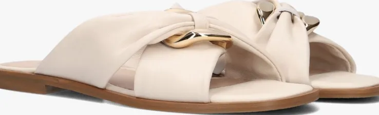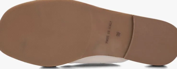 De Italiaanse ontwerpen van het merk NOTRE-V zijn er voor de moderne vrouw die graag gekleed gaat volgens de laatste trends. De producten zijn gemaakt van kwalitatieve materialen met subtiele accenten en een mooie afwerking. Deze zomerse, beige slipper 226 is gemaakt van zacht leer en heeft twee brede banden over de wreef met een goudkleurige schakel in het midden. Het binnenwerk is gemaakt van soepel, zacht leer en heeft een dempend voetbed voor extra comfort. De rubberen loopzool heeft een laag hakje van1,5 centimeter en een fijn profiel voor voldoende stabiliteit. Combineer deze slipper onder jouw favoriete zomerjurk of draag ze onder een toffe short!