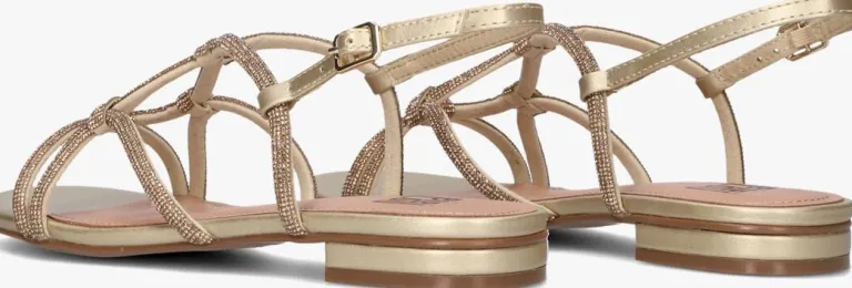 Stap in stijl met deze gouden leren slippers van Bibi Lou! Met een ronde neus en een Goude gespsluiting zijn ze niet alleen trendy, maar ook comfortabel. Het bovenwerk van de slippers heeft smalle leren bandjes die zijn afgewerkt met strass-steentjes. Deze slippers passen perfect bij een zomerse jurk of een casual jeans. Of je nu naar het strand gaat of een dagje gaat winkelen, met deze slippers loop je er altijd fashionable bij. Laat je voeten stralen met deze eyecatchers!