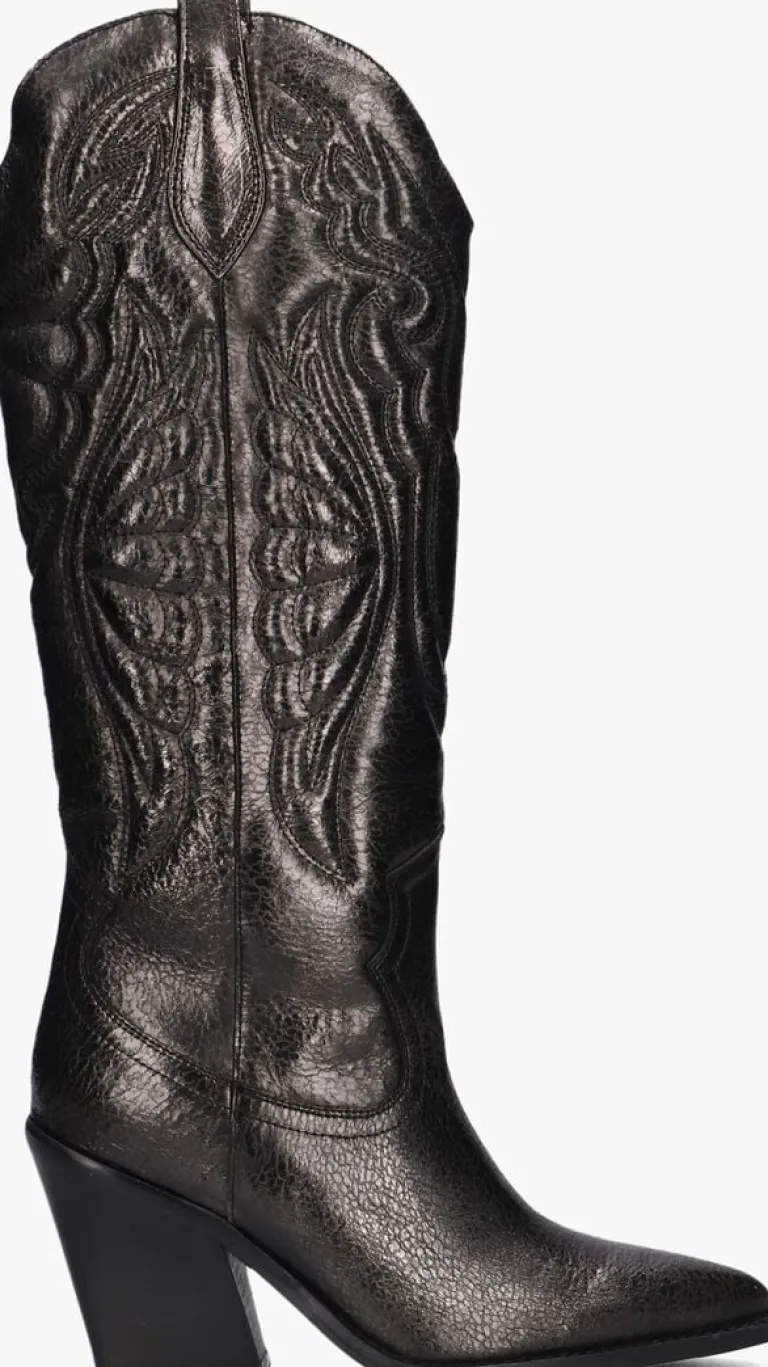 Ga voor een opvallende, stoere look met deze grijze lange laars NEW-KOLE 14177met toffecowboy-look van het merkBRONX!Deze glanzendecowboylaars heefteen afgeronde schacht met aantreklussen en is voorzien van gewatteerde vlammenpanelen en versieringen op de geheleschacht. Daarnaast heeft de laars eenspitse neus eneen stevige, schuin aflopende westernhak. Het bovenwerk is uitgevoerd in hoogwaardig leer en de binnenvoering is van zacht leer met een vast voetbed. De rubberen zool geeft de laars een goede grip en de gelaagde hakheeft een hoogte van ruim 9centimeter. Deschacht is 37centimeter hoog en heeft een kuitwijdte van 35 centimeter, gemeten ter hoogte van de kuit. Draag ze ultra feminin met eenrok of jurk of superstoer onder een jeans!