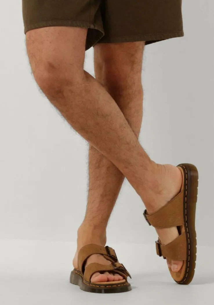 Stap in stijl met de JOSEF M slippers van het merk DR MARTENS. Deze bruine slippers met gespsluiting zijn perfect voor heren die op zoek zijn naar comfort en een stoere uitstraling. Draag ze naar het strand of tijdens een ontspannen dagje in de stad. Combineer de slippers met een casual outfit, zoals een jeans en een T-shirt, voor een relaxte look. Met deze slippers ben je klaar voor elke zomerse dag!