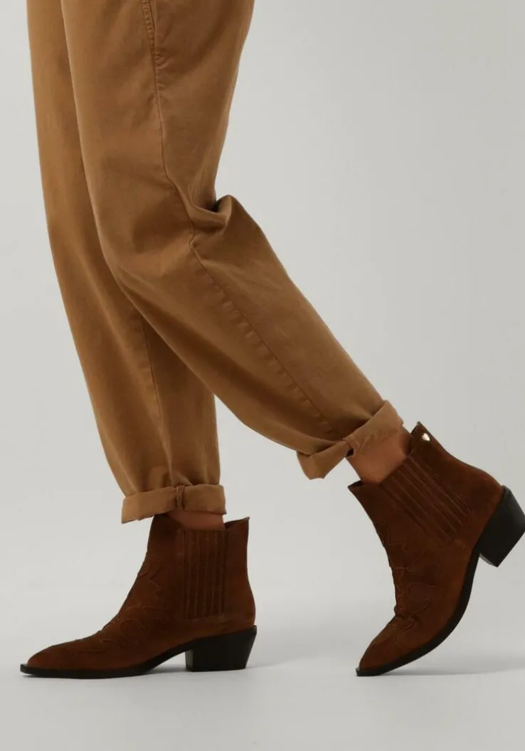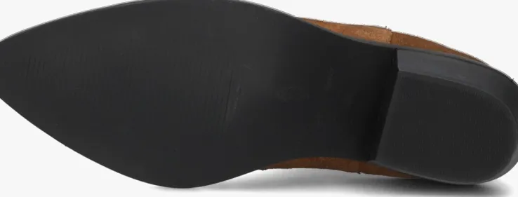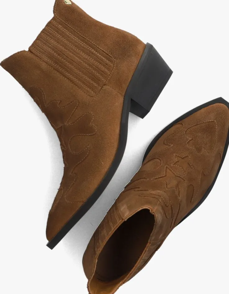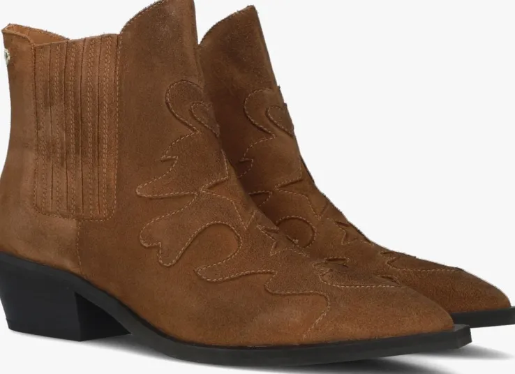 Met behulp van uitdagende collecties wil het merk Fabienne Chapot vrouwen verleiden om op te durven vallen. En dat doe je met deze enkellaars TAMMY BOOT zeker! Dit toffe model met western touch is uitgevoerd in cognackleurig suède. Opvallend is de puntige neus met de vierkante zool die een stukje doorloopt, de speelse opgestikte vormen van het suède op de neus, de merkstud op de achterkant, de gelaagde blokhak en de elastische, beklede panelen op de zijkanten voor een gemakkelijke instap en trendy touch. Het binnenwerk is van leer en heeft een vast, leren voetbed. De hakhoogte is 5 centimeter en de schachthoogte is bijna 13 centimeter (gemeten bij maat 38). Draag de enkellaarzen onder een jurk en geef je outfit een stoere touch. Of combineer deze toffe boots met een jeans en je creëert eenvoudig een trendy look!