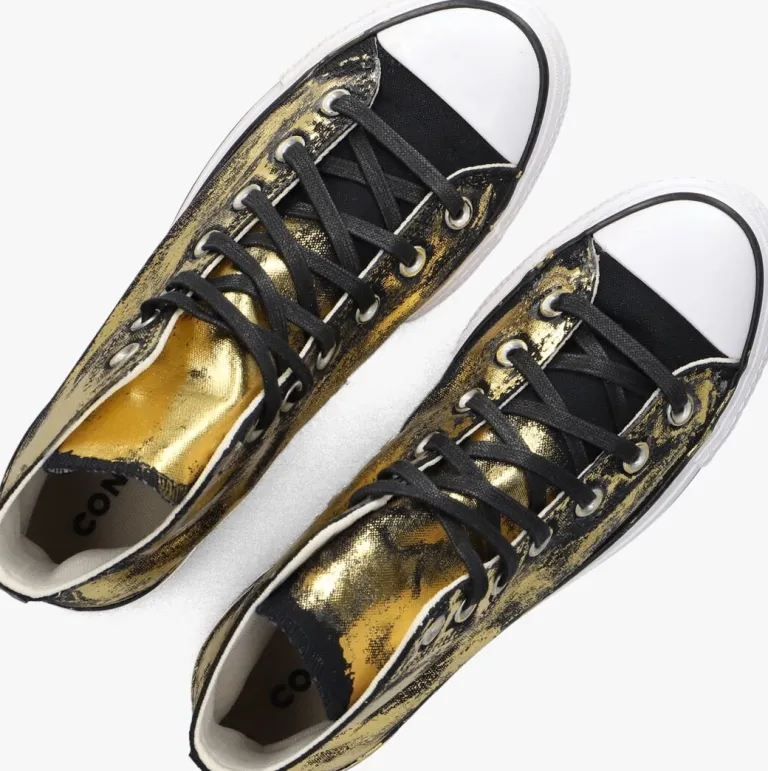 Voeg een vleugje glamour toe aan je dagelijkse look met deze gouden CHUCK TAYLOR ALL STAR LIFT hoge sneakers. De ronde neus en de plateauzool geven je outfit een trendy twist. Dankzij de canvas binnenkant blijven je voeten comfortabel, of je nu een dagje gaat shoppen of een ontspannen wandeling maakt. Combineer ze moeiteloos met een casual jeans of een speelse zomerjurk voor een stijlvolle uitstraling. De vetersluiting zorgt voor een perfecte pasvorm, terwijl de robuuste rubberen zool zorgt voor grip en stabiliteit. Deze sneakers zijn de perfecte mix van comfort en stijl voor elke dame.