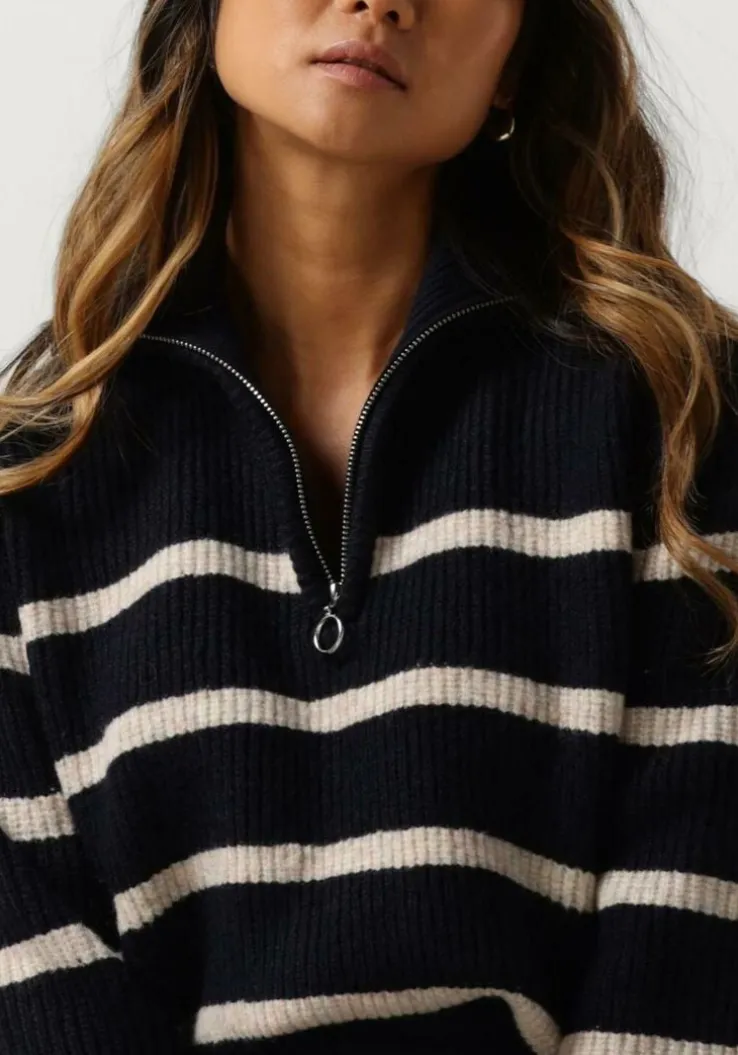 Met de NEVENA STRIPE KNIT BLOUSE van NEO NOIR ben jij helemaal klaar voor elke dag! Deze donkerblauwe trui is perfect voor dames die op zoek zijn naar comfort en stijl. Gemaakt van acryl, voelt de binnenkant heerlijk zacht aan op je huid. De half zip geeft een trendy touch aan deze klassieke trui. Draag hem tijdens een ontspannen wandeling in het park of tijdens een gezellige lunch met vriendinnen. Combineer de NEVENA STRIPE KNIT BLOUSE met een jeans en sneakers voor een casual look, of met een rok en enkellaarsjes voor een meer geklede outfit. Met deze trui ben jij altijd on-trend!