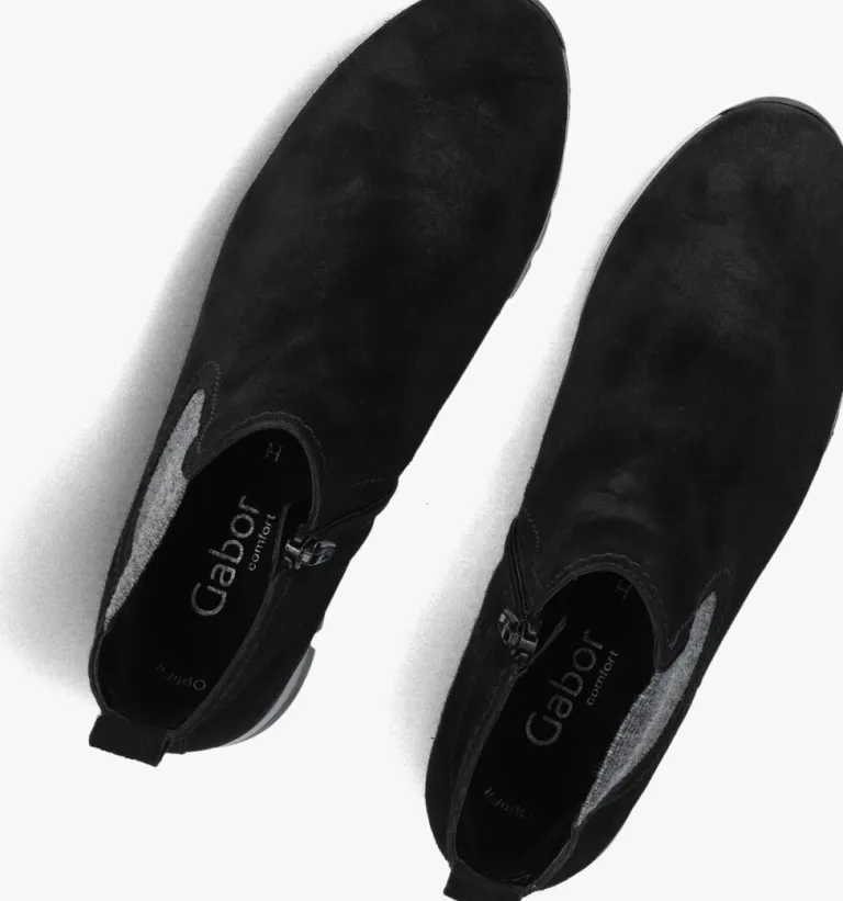 Deze chelsea boot 451 komt uit de collectie van het merk Gabor. Dit comfortabele item heeft een bovenwerk van zwart suède en een grijs elastieken inzetstuk aan de zijkant. Leuke details zijn het aantreklusje op de achterkant van de schacht, het stiksel rond de elastiek en de zwarte inzet in de zoolrand. De laars heeft een ritsje waarmee je ‘m gemakkelijk aandoet en een binnenwerk van suèdelook. Het dempende voetbed is uitneembaar en dit model heeft een H-wijdte, waardoor de schoen meer ruimte heeft in het gebied bij de bal van de voet en de wreef. De zool is onder de voorvoet ruim 2 centimeter hoog en loopt naar achteren toe op tot 3,5 centimeter. Een comfy laarsje dat je makkelijk combineert! Waar draag jij ‘m bij?