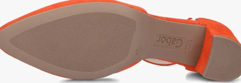 Deze oranje pump 340komt uit de collectie van het merk Gabor. Dit elegante model is uitgevoerd in luxe suède en heeft een bandje met subtiele gesp om de enkel. De pump heeft een voering van leer en een vast voetbed. Het met leren bekledeblokhakje isruim 5 centimeter en zorgt voor een extra vrouwelijke look. Dit model heeft een smallere F-wijdte, een spitseneus en een flexibele rubberen zool. Met recht eenstralende verschijning onder jouw favoriete outfit!