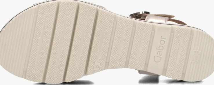 Stap in stijl met deze prachtige goudkleurige sandalen van Gabor. De sandalen, genaamd 083.3, zijn perfect voor een zomerse dag in de stad of een ontspannen strandwandeling. Deze sandalen zijn gemaakt van zacht goudkleurig leer met losse bandjes over de wreef. De sandaal heeft een gesp sluiting zodat de schoen aan de voet sluit. Met zijn zachte binnenkant van leer en zijn comfortabele zachte kussentjes in het voetbed, zijn deze sandalen een must voor je voeten! De hak is 4 centimeter hoog en heeft een gripvaste loopzool en kan je moeite flaneren op deze eyecatchers.