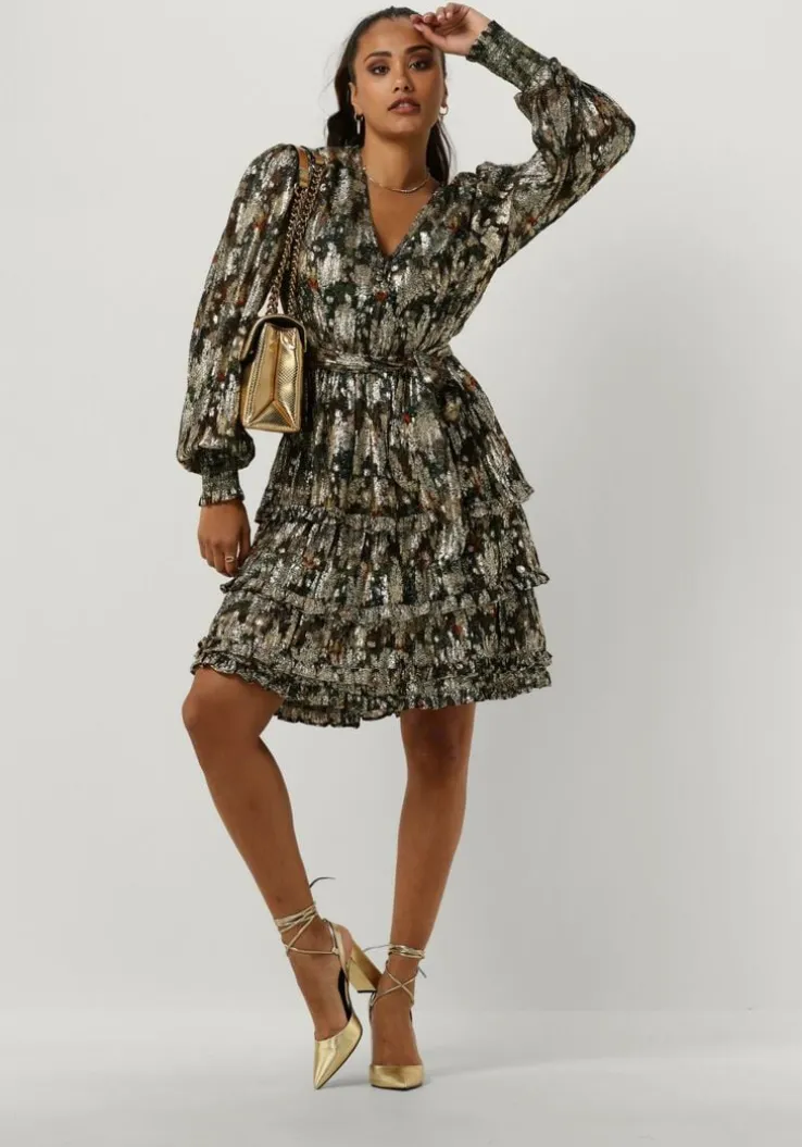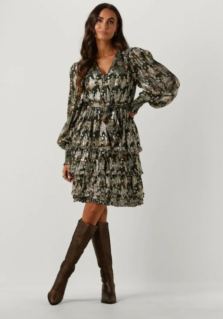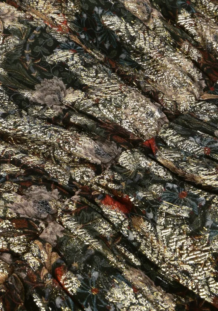 Met de EST’CITY DRESS 1 van EST’SEVEN ben jij klaar om de stad te veroveren! Deze zwarte jurk is perfect voor dames die stijlvol en comfortabel willen zijn. Met zijn prachtige bloemen print n gouden meteallic draad, is deze jurk een must-have voor elke fashionista. Draag hem tijdens een avondje uit met vriendinnen of tijdens een romantische date. Combineer de jurk met een paar elegante hakken en een statement tas voor een complete look. Deze jurk past ook goed bij een leren jasje en stoere boots voor een edgy uitstraling. Laat jezelf stralen in deze prachtige jurk en laat de wereld zien hoe stijlvol jij bent!
