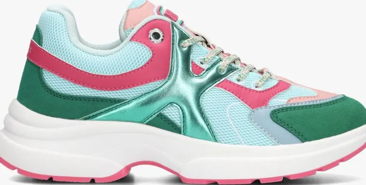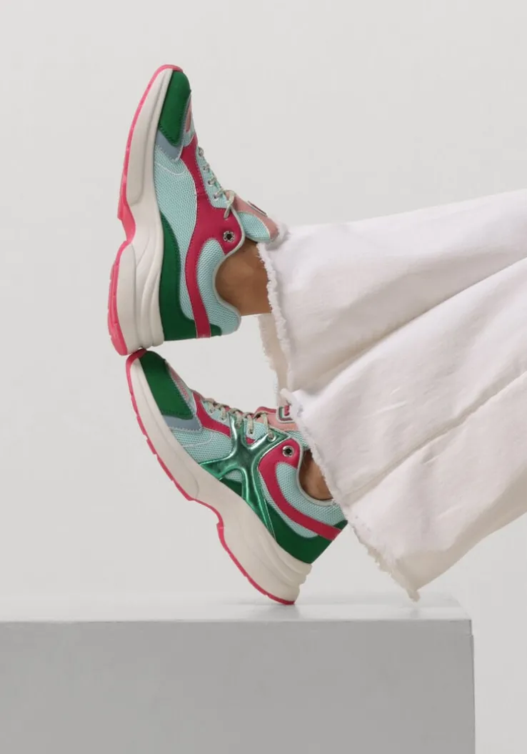 Stap in stijl met de groene leren lage sneakers LOYCE van het merk MEXX. Dit model is uitgevoerd in blauw mesh met panelen van verschillende materialen in donkerroze, licht roze, blauw en groen. Opvallende details zijn de veters in de kleur beige met groen, het merkreliëf op de hiel en tong. De binnenvoering is gemaakt van mesh en heeft een uitneembaar voetbed. Door de gevoerde enkelkraag en tong biedt dit de schoen ultiem loopcomfort. De rubberen zool met roze loopzool heeft een gripvast profiel waardoor je heel de dag door heerlijk kunt wandelen. Combineer deze sneakers met een casual outfit voor een trendy look. Of draag ze onder een zomerse jurk voor een sportieve twist. Laat jezelf stralen met de LOYCE sneakers!