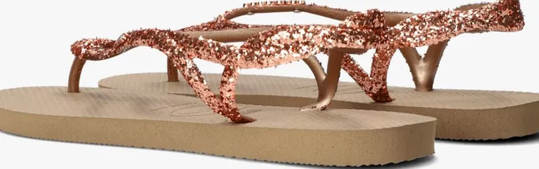 Een absolute zomer must-have van het Braziliaanse merk Havaianas; dat is deze trendy LUNA PREMIUM II slipper. Dit feminine exemplaar heeft smalle bandjes die afgewerkt zijn met roze glitters voor een opvallende look. Ook is op het bandje een metalen merkembleem te vinden en heeft hij een enkelbandje, waardoor je slipper altijd goed blijft zitten en je klaar bent om over de boulevard of door de stad te wandelen. De slipper is comfortabel, duurzaam, lichtgewicht, anti-slip, hittebestendig én waterresistant. Wat wil je nog meer? Dat de zon schijnt en je ze de hele dag kan dragen natuurlijk!