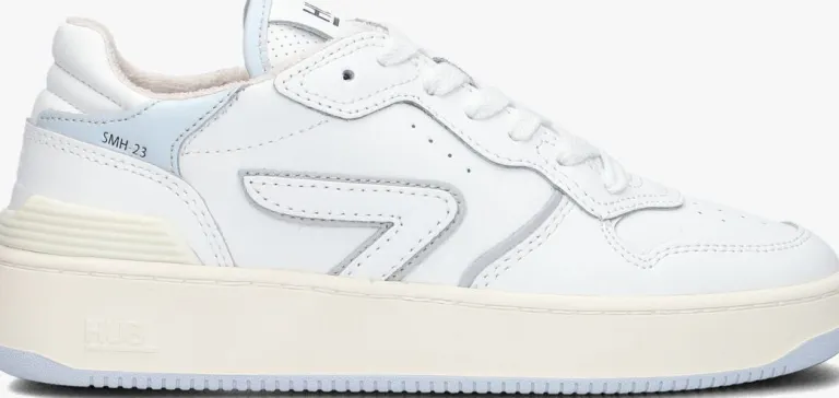 De SMASHsneakeruit de collectie van het merk HUB isop basketball-schoenen geïnspireerd en heeft een uniekontwerp en een hoog comfort. Deze witte sneaker is gemaakt van soepel leer met grijze accenten, perforaties op de neus en tong en een toffe retro look. De rubberen kuipzool is niet alleen heel flexibel maar ook ultralicht van gewicht envoorzien van een reliëf merkopdruk. Uniek details zijn de merkopdrukken op de tong en hiel, de verstevigende hielstabilisator en het welbekende logo op de zijkant van de sneaker. Het binnenwerk is van vochtabsorberend badstof en het uitneembare voetbed met gelvulling zorgt gegarandeerd voor het gevoel dat je op kussentjes loopt. Daarnaast heeft het voetbed het zogenaamde Air Flow-ventilatiesysteem zodat jouw voeten altijd droog en fris blijven. En uiteraard zorgt het profiel in de blauwe zool voor een uitstekende grip. Wordt dit jouw nieuwe favoriete sneaker?