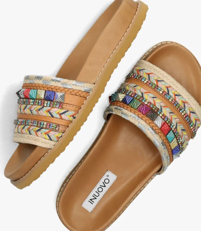 Stap in stijl met deze kleurrijke slippers van INUOVO! Deze slipper is gemaakt van leer en heeft toffe details in verschillende kleuren en materialen zoals, gekleurde strassteenjes, gevlochtentouw met zilverkleurig detail, gevlochtentouw met gekleurde details en studs in verschillende kleuren. De binnenvoering is gemaakt van leer en heeft een zacht dempend voetbed van leer. De rubberenzool met gripvast profiel biedt grip en stabiliteit. Deze slippers passen goed bij een jeans en een basic t-shirt, maar kunnen ook gedragen worden onder een zomerjurkje voor een speelse touch. Met deze slippers ben je klaar voor elke gelegenheid!