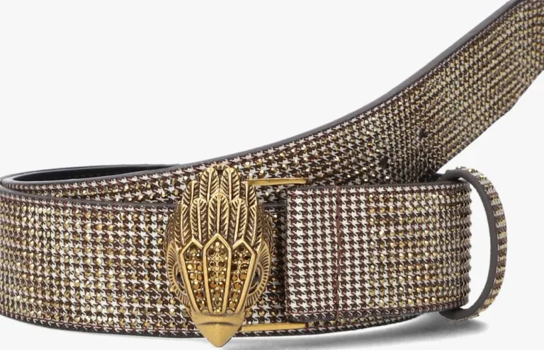 Voeg een vleugje elegantie toe aan je outfit met de KENSINGTON 38 BELT van KURT GEIGER LONDON. Deze goudkleurige riem met pied-de-poule print en strass is perfect voor dames die houden van een stijlvolle en opvallende touch. De breedte is 3,5 centimeter.