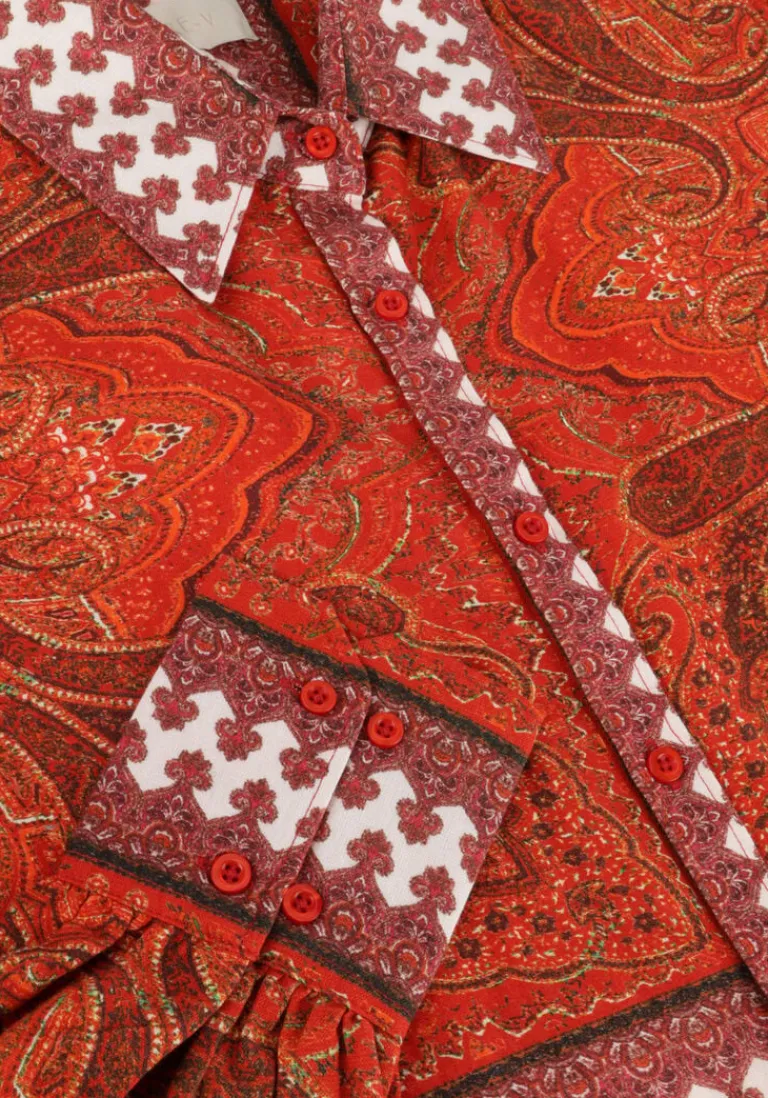 Met de NV-DINA blouse van het merk NOTRE-V voeg je een vleugje rood toe aan je garderobe. Gemaakt van katoen, is deze blouse perfect voor een casual dagje uit of een gezellige lunch met vriendinnen. Combineer het met een zwarte skinny jeans en enkellaarsjes voor een trendy look. Deze blouse past ook goed bij een zwarte midi-rok en hakken voor een chique avondje uit. Voeg wat kleur toe aan je outfit met deze blouse en straal de hele dag door!