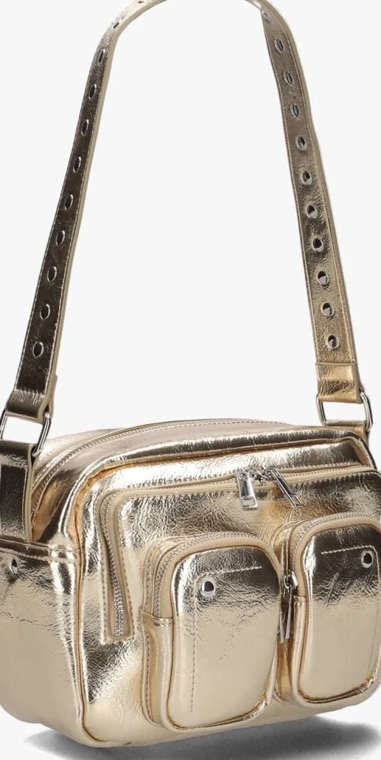 Met de ELLIE RECYCLED schoudertas van NÚNOO maak je een statement. Deze gouden lakleren tas is perfect voor dames die houden van een opvallende look. De tas is niet alleen stijlvol, maar ook praktisch door zijn ruime binnenwerk, neem je gemakkelijk al je essentials mee. De tas heeft zilveren sluitingen in het hoofdvak als in de kleine vakjes aan de voorzijde van de tas, waar je gemakkelijk je lipgloss of je paspoort in kan opbergen. Draag hem over je schouder en je hebt je handen vrij voor al je activiteiten. Of je nu gaat winkelen of een dagje uit gaat, deze tas is jouw ideale metgezel. Combineer de ELLIE RECYCLED met een zwarte skinny jeans en een witte blouse voor een trendy en chique outfit. Of draag hem bij een feestelijke jurk voor een extra touch of glamour.