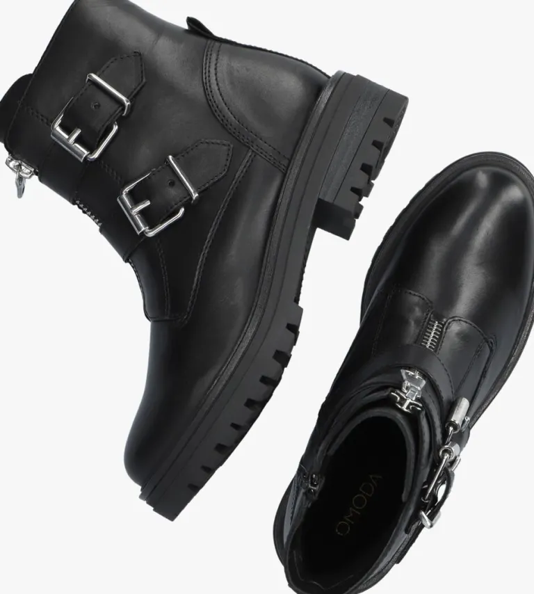 Deze stoere zwarte bikerboots LPMONK-01 komen uit de collectie van het merk OMODA. De buitenkant is gemaakt van gladleer en heeft twee bandjes met zilverkleurige gespen om de schacht. Daarnaast isde schoen voorzien van een sierrits op de voorkant en een handige aantreklus van leer op de hiel. Dankzij de ritssluiting aan de binnenzijde van de schoen trek je ‘m gemakkelijk aan en uit. De voering is gemaakt van zacht textiel en heeft een vastvoetbed van leer. Het gripvaste profiel onder de rubberen zool zorgt voor voldoende grip, stabiliteit en steun. Onder de voorvoet is de zool 2,5 centimeter hoog met een blokhak van 4 centimeter. Trek deze stoere schoen aan onder een jeans of juist onder een jurkje, het kan allemaal!