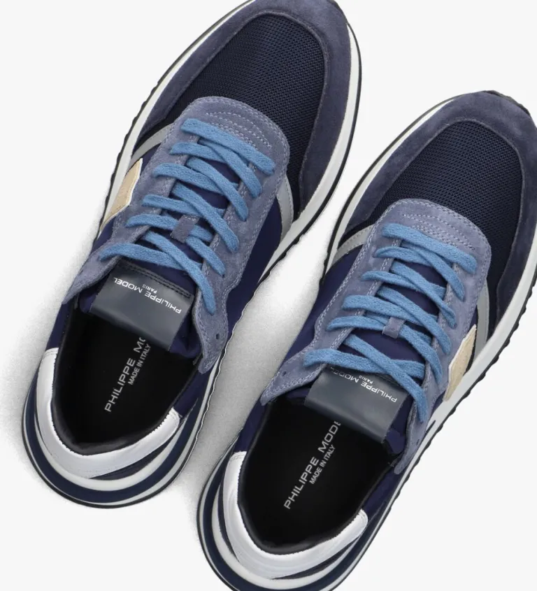 Stap stijlvol de deur uit met de TROPEZ 2.1 LOW sneakers van PHILIPPE MODEL. Deze blauwe lage sneakers met een ronde neus zijn een echte eyecatcher. De sneaker zijn gemaakt van leer in combinatie met textiel en suède panelen, in de kleur beige en blauw. De binnenkant is van leer en textiel, biedt ultiem comfort. De rubberen zool zorgt voor een stevige grip, ideaal voor een dagje stad verkennen of een casual vrijdag op kantoor. Combineer ze moeiteloos met een strakke jeans of een nonchalante chino voor een moderne, stijlvolle look. Vetersluiting zorgt voor een perfecte pasvorm. Voeg een vleugje luxe toe aan je dagelijkse outfit.