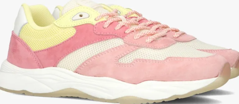 Dit heerlijke seizoen verdient een vrolijke sneaker! Ga voor deze multi sneaker CELEST 2.0 uit de collectie van het Amsterdamse couture-merkSCOTCH & SODA. De buitenkant is gemaakt van glanzend, beige mesh met lichtroze en roze overlays van suède. Opvallend is de gele enkelkraag, de witte hielcap en de rubberen merkemblemen op de tong en hiel.Het binnenwerk is gevoerd met meshtextiel en heeft een vast voetbed. De witte oplopende, rubberen zool is voorzien van een lijnenprofiel en de transparante loopzool heeft een gripvast profiel die een goede grip en stabiliteit biedt op iedere ondergrond.
