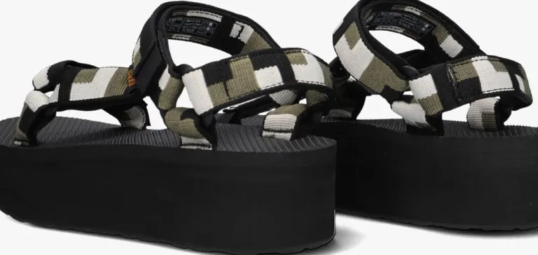 Breng je zomerse outfit naar een hoger niveau met deze te gekke platform sandalenW FLATFORM UNIVERSAL van het merk TEVA. De bandjes van het bovenwerk zijn gemaakt van zwart, groen en wit textiel en door de klittenbandsluiting aan de voorvoet en om de enkel pas je ‘m perfect aan naar je voet. Het voetbed is uitgevoerd in rubber met een fijn reliëf structuur. De plateauzool is zo’n 3,5 cm dik onder de voorvoet en loopt naar achteren toe op naar 4,5 cm en is gemaakt van microrubber. De loopzool van rubber is afgewerkt met een gripvast profiel.
