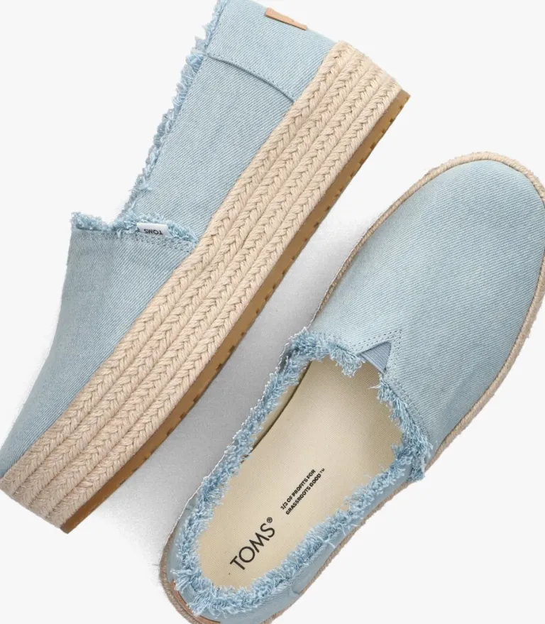 Het zonnetje schijnt, espadrilles aan je voeten, terrasje pakken, drankje erbij…laat die warme zomerdagen maar komen! Deze denim blauwe espadrilles VALENCIA met een jute, gevlochten plateauzool van TOMS geven je in ieder geval de perfecte zomerse look. Het elastische V’tje op de wreef zorgt voor een goede pasvorm en een gemakkelijke instap. De schoen is gevoerd met canvas en heeft een uitneembaarOrtholite voetbed die je extra comfort geeft.Het merkembleem is te vinden aan de zijkant van de schoen en de hiel is voorzien van een bruin merklabel. De plateau zool is maar liefst 4 centimeter hoog en heeft een rubberen loopzool met grof profiel voor veel grip tijdens al je zomerse wandelingen over de boulevard of door de stad. En het allermooiste: voor elk paar schoenen dat je koopt, geeft Toms een paar nieuwe schoenen aan een kind in nood, One for One®.