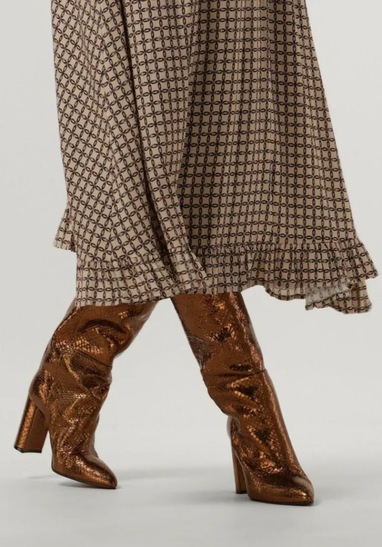 Ben je op zoek naarfashionablelangelaarzen?Dan is dit model een hele goede kandidaat om aan jouw schoenengarderobe toe te voegen! Deze bronskleurige laars 12591met reliëf van het merkTORALkenmerkt zich door de spitse neus, de mooie minimalistische afwerking aan de schacht en de beklede blokhak. Dit model is uitgevoerd in hoogwaardig soepel leermet een lerenbinnenvoeringen een vast voetbed. De loopzool is uitgevoerd in leer met een fijn maar gripvast profiel en dehak is voorzien van een kunststof haktip. De hakhoogte is 9 centimeter, schachthoogte is 43centimeter en de kuit heeft een wijdte van 39centimeter, gemeten op het breedste punt bovenaan de schacht. Combineer ‘m lekker stoer met jouw lievelingsjurk en straal met je opvallende look!