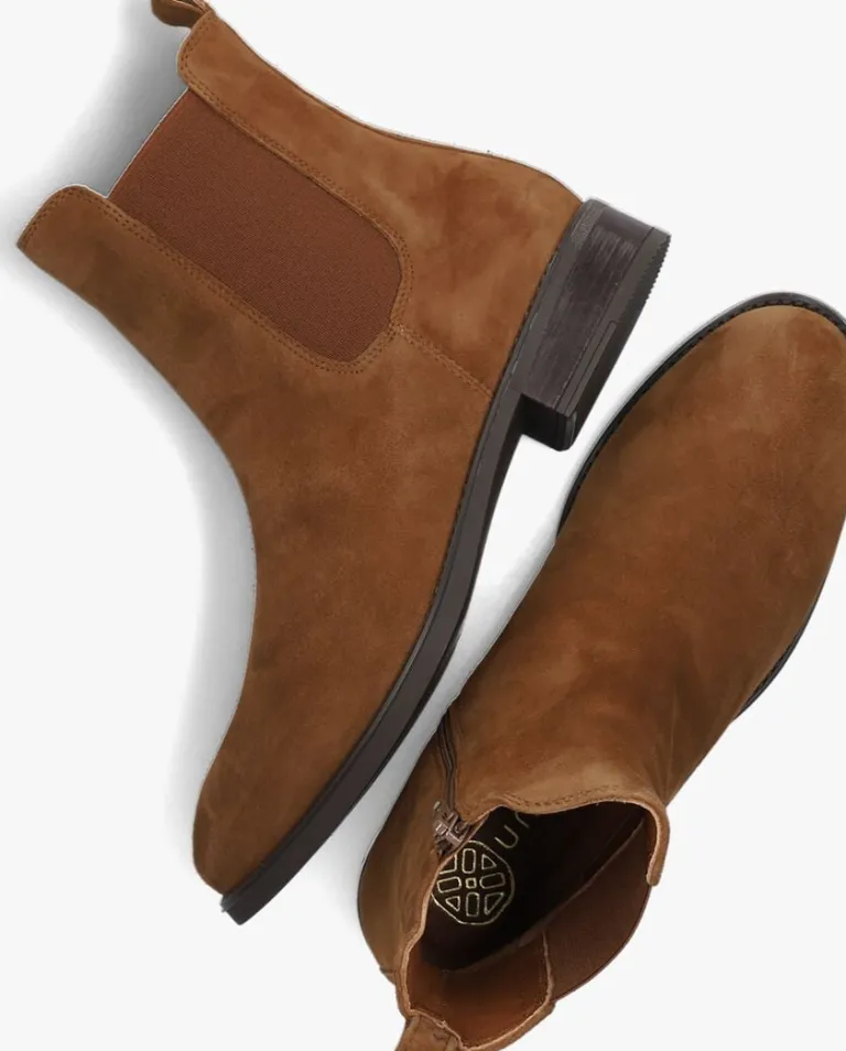 Maak je outfit compleet met deze fijne chelsea boot BARTY van het merk UNISA! Dit model is uitgevoerd in cognackleurig suède en heeft elastiek aan de zijkant. Het binnenwerk is gemaakt van leer en textiel en de schoen heeft een vast voetbed. Een leuk detail is het suède aantreklusje op de achterkant van de schacht. De schachthoogte is 14 centimeter (gemeten bij maat 38) en de hak met houtlook is 3 centimeter hoog. Combineer de laars met een jeans of draag ‘m onder een jurk. Hij past overal bij!