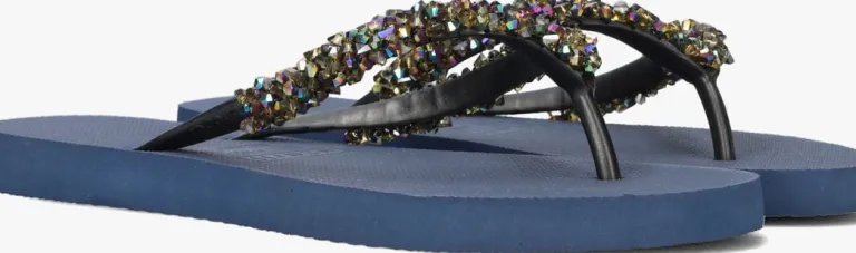 Deze blauwe ABI slipper uit de collectie vanluxurymerk Uzurii is een ware eyecatcher om al die stranden en drukke boulevards mee af te struinen! De producten van dit Nederlandse modemerk zijn stuk voor stuk handgemaakt met speciale technieken en grote toewijding. Deze luxe slipper is uitgevoerd in hoogwaardig rubber en heeft prachtigestrass-stenen in holografische kleuren op de wreefband. De schoenendoos waar deze mooie slippers in worden geleverd heeft een luxe afwerking enaan ze binnenzijde voorzien van een spiegel. Na gebruik kanje ‘m dus gebruiken als handig make-up of sieradenopbergdoos.