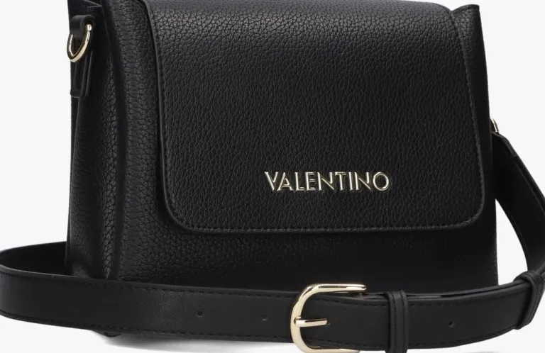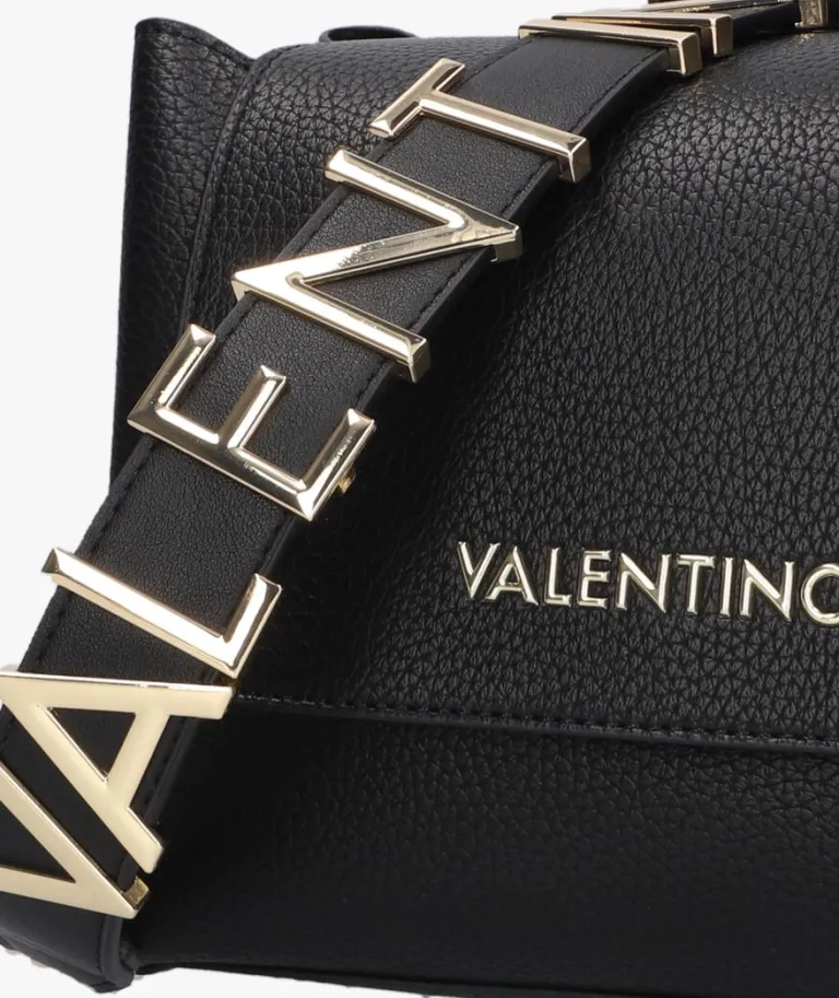 Verwen jezelf met deze zwarte schoudertas ALEXIA SATCHEL van VALENTINOBAGS. Dit ruime model heeft een fijne structuur in het soepele lederlook bovenwerk en kan worden afgesloten met een soepelvallende klep met magneetsluiting. De tas bestaat uit twee ruime steekvakken, een ruim ritsvak en een klein ritsvakje waarin je jouw spulletjes perfect kunt organiseren. Het binnenwerk is gevoerd met glad lederlook materiaal in combinatie met zijdezacht microtextiel. De middellange schouderband (77 cm) van glad lederlook is voorzien van schuifbare, goudkleurige merkletters die de tas een luxe en trendy touch geven.Daarnaast is de schouderbandtevens afneembaar zodat je ‘m eenvoudig kunt vervangen voor een andere band voor een perfecte match bij je outfit.Of je nu gaat shoppen of werken; deze ruimeschoudertas is jouw nieuwelievelings! Afmetingen: 26x 12x 19cm (lengte x breedte xhoogte)