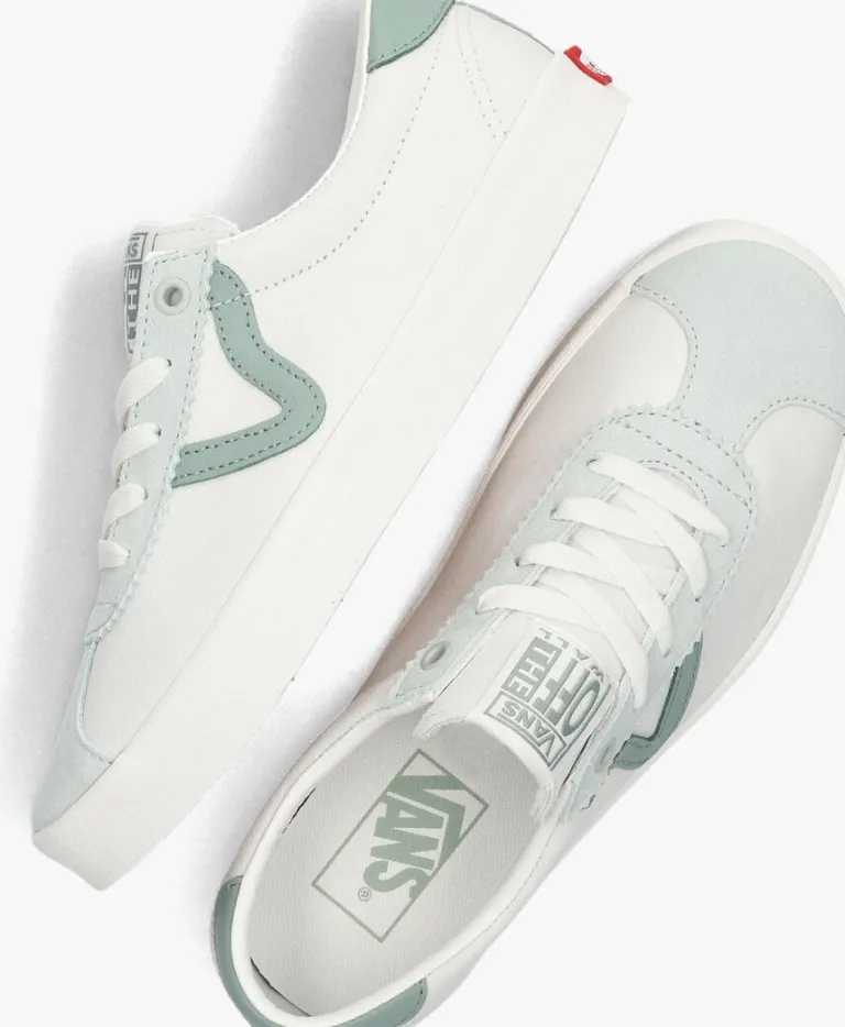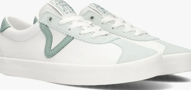 Stap in stijl met de VANS SPORT LOW TRI-TONE lage sneakers voor dames. Deze witte sneakers met groene suède en leren accenten, zijn perfect voor een casual dagje uit of een relaxte wandeling in het park. De sneaker heeft een canvas binnenwerk en een witte rubberen zool met op de hiel het rode merkembleem. Combineer ze met een jeans en een basic t-shirt voor een trendy look. De sneakers passen ook goed bij een sportieve outfit met een legging en een hoodie. Met deze VANS sneakers ben je helemaal klaar voor elke gelegenheid!