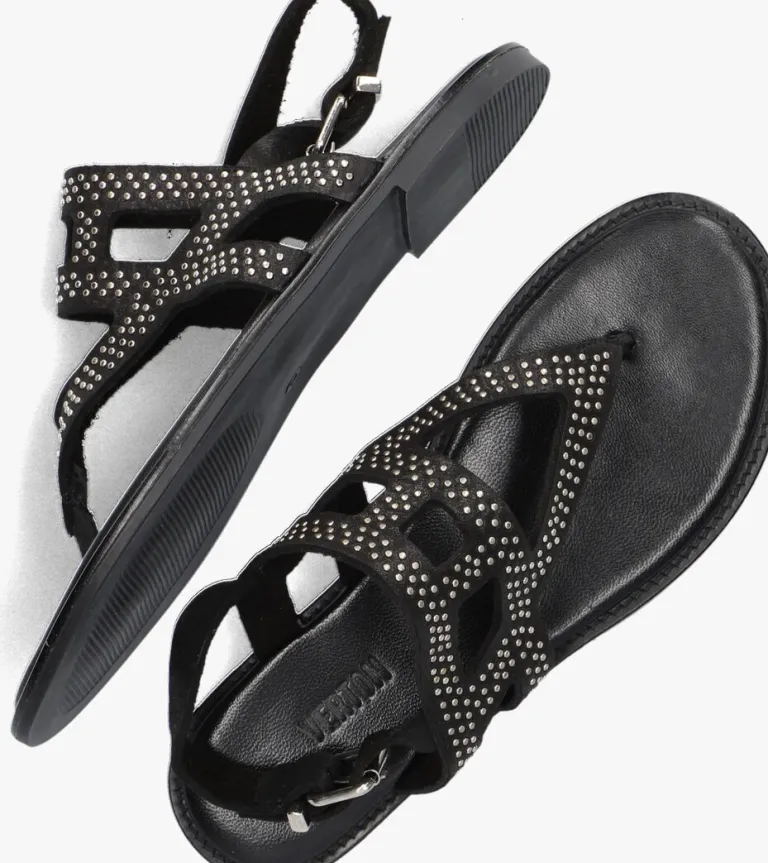 De eigenzinnige ontwerpen van het merkVERTON hebben een rauwe,urbanvibeen zijn er voor trendbewustecreatievelingendie ‘lessis more’ als stijlmotto hebben. Gemaakt van luxe materialen met stoere, opvallende accenten. Deze toffe sandaalS-10262isuitgevoerd in zwartleer, heefteen mooie decoratie bovenop de voet en is afgewerkt met kleine platte zilverkleurige studs. Dankzij het bandje om de hiel met gespsluiting trek je ‘m gemakkelijk aan en uit en blijft hij perfect om je voet zitten. Het binnenwerk van suède zorgt voor een fijn comfort en het voetbed is van leer en heeft een reliëf merkopdruk. De rubberen zool is flexibel en voorzien van een fijn profiel.