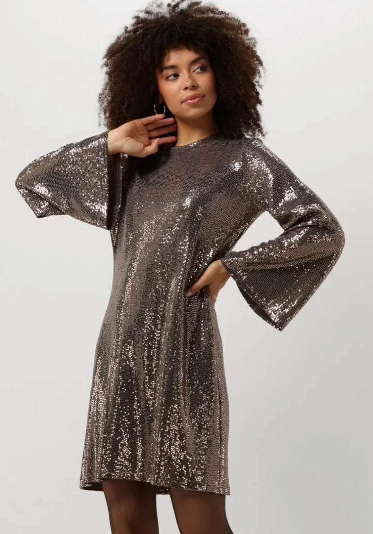 Stralend de avond in met de DRESS WIDE SLEEVES van ANA ALCAZAR. Deze grijze mini jurk, bezaaid met zilverkleurige, glinsterende pailletten, trekt alle aandacht. Perfect voor een avondje uit of een feestelijke gelegenheid. Combineer met een paar elegante hakken en een clutch voor een complete look. De wijde mouwen geven een speelse twist aan het geheel. Voel je zelfverzekerd en stijlvol in deze opvallende jurk.