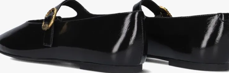 Stap stijlvol de dag in met de MAYFAIR BALLET ballerina’s van KURT GEIGER LONDON. Deze zwarte pareltjes combineren elegantie met comfort. Perfect voor een dag op kantoor of een gezellige lunch met vriendinnen. De ballerina’s zijn gemaakt van zwart lak leer. Aan de bovenzijde is een bandje met een goudkleurige gesp te vinden met daarop het welbekende aadelaarshoofd en goudkleurige strassteentjes. De binnenvoering is van leatherlook en heeft een lederen voetbed. De rubberen zool heeft een gripvast profiel waarmee je heel de dag door kunt wandelen. Voeg een vleugje Londense klasse toe aan je dagelijkse stijl met deze prachtige ballerina’s.