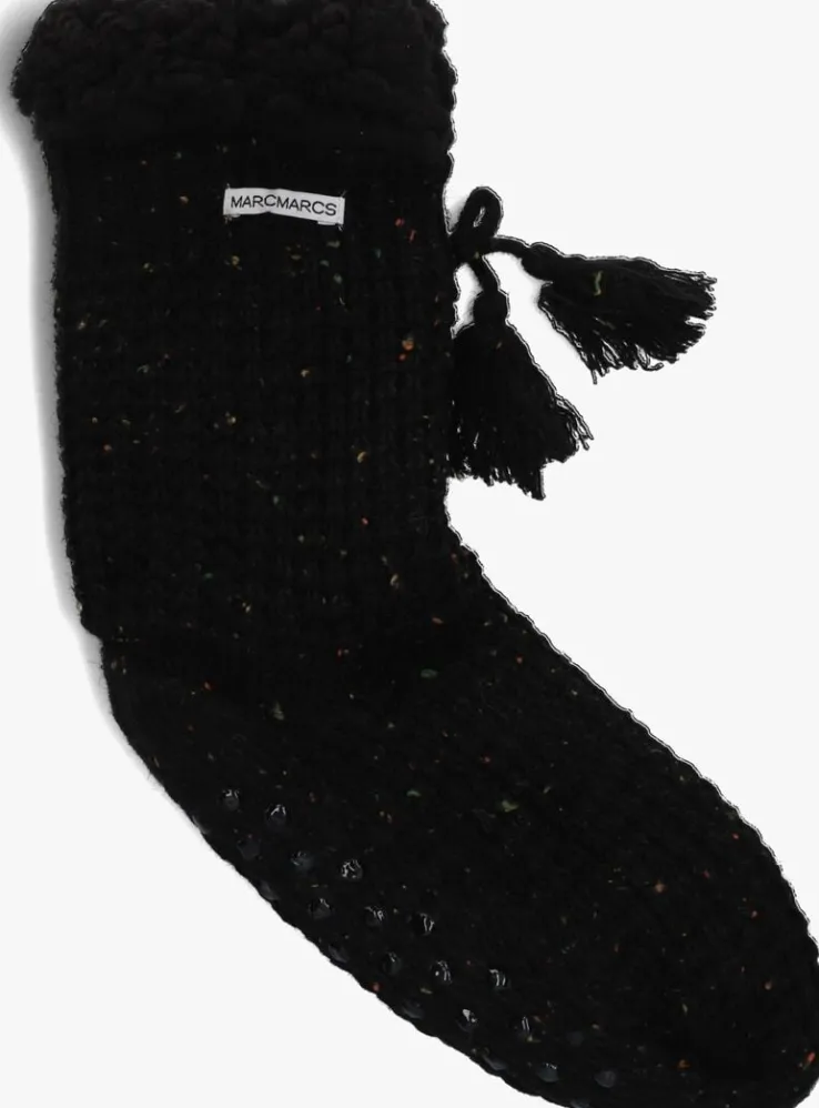 Met deze sokken ABS LORIDANA van MARCMARCS zijn je voeten heerlijk warm! Dit zwarte model bestaat uit acryl en polyester en heeft in de stof verschillende kleurtinten. De voorkant is afgewerkt met een strikje en de faux-fur voering is heerlijk zacht. Draag ze bij een comfy outfit en geniet van je relaxte dag!