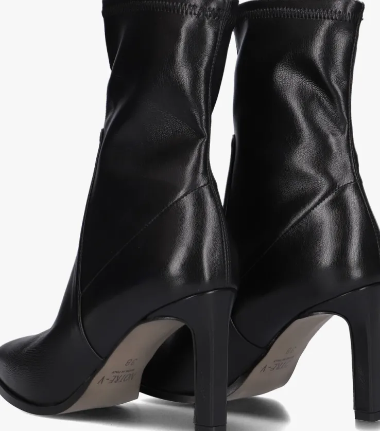 De elegante, Italiaanse ontwerpen va het merk NOTRE-V zijn er voor de verfijnde vrouw die er graag effortless chic uitziet. Gemaakt van luxe materialen met subtiele accenten en een knipoog naar de laatste trends. Deze enkellaars 87450 is gemaakt van hoogwaardig zwart leatherlook en heeft verschillende, subtiele details. Zo heeft dit model een elastische schacht, waardoor hij goed aansluit aan jou been en gemakkelijk aan-en uit te trekken is. De spitse neus geeft de schoen een chique look en de smalle hak van 9 centimeter hoog maakt dit plaatje compleet. Het binnenwerk is gemaakt van zacht fleece textiel en het vaste voetbed is opgevuld onder de hiel voor veel comfort. Combineer ‘m met een jeans of jurk, welke optie kies jij?