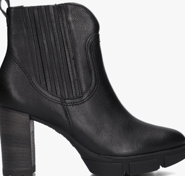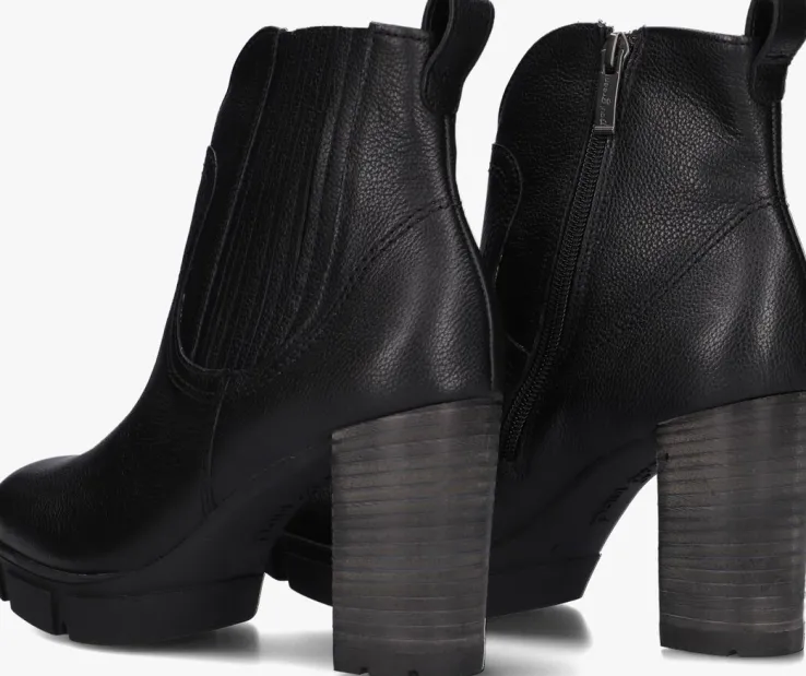 Comfortabele fashion met een trendy look;het merk Paul Green maakt het mogelijk! Deze enkellaars 9033 is uitgevoerd in hoogwaardig, zwart leer en heeft een stoer uiterlijk. Zo heeft het laarsje een trendy V-inkeping aan de voorzijde, een elastisch paneel met leren accenten aan de buitenzijde en een aantreklus aan de achterzijde. De schachthoogte is ruim 11 centimeter en je trekt ‘m gemakkelijk aan en uit door de ritssluiting aan de binnenzijde. De houtlook blokhak is 9 centimeter hoog en is afgewerkt met een kunststof haktip. De rubberen loopzool heeft onder de voorvoet een grof profiel en is 2 centimeter hoog. Combineer ‘m onder je favoriete jurk of rok en je bent klaar om op pad te gaan!