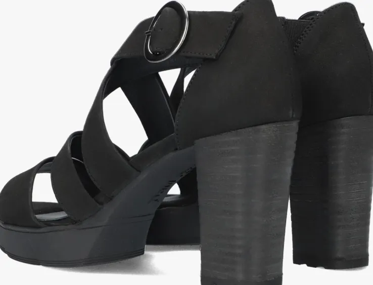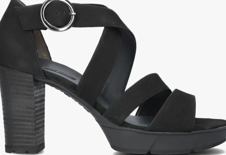 Elegante zwarte sandaal 7942 met blokhak en plateau van het merk Paul Green. Dit model is uitgevoerd in hoogwaardig nubuckleer met een dempend voetbed van leer die een comfortabele demping biedtde hele dag door. Dit item is heel stijlvol door de mooi vormgegeven band op de voorvoet en wreef en het enkelbandje met zilverkleurige gespsluiting.De gelaagde blokhak isbijna 10 centimeter hoog, maar door hetplateau onder de voorvoet van ruim 2 centimeterdik loopt deze sandaal erg comfortabel en is hij daardoor heel geschikt voor al jouwdagelijkse bezigheden. Door de perfecte pasvorm in combinatie met het dempendevoetbed en de flexibele rubberen zool ervaar je veelloopcomfort. Combineer ‘m onder een wijde jurk of juist onder een jeans om je outfit een trendy touch te geven.