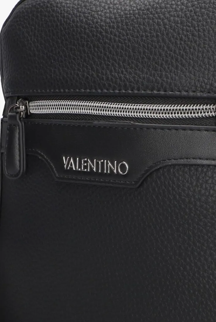 Met de EFEO CROSSBODY schoudertas van VALENTINO BAGS maak je een fashion statement. Deze zwarte tas is uitgevoerd in zwart leatherlook, heeft een compartiment en word afgesloten met een rits. De binnenzijde is gevoerd met zwart textiel en er bevind zich één steekvak van smartphone grootte, ook heeft het een ritsvakje waar je jouw blangrijke spullen in kunt opbergen. Aan de voorzijde bevind zich een ritsvak en het bekende merkembleem in het zilver. Aan de achterzijde bevind zich ook een ritsvak waar je extra spullen in kunt meenemen. De tas bevat een brede zwarte schouderband van glanzend textiel en heeft herhalende merkopdrukken en is verstelbaar op de gewenste lengte, zodat je de tas kunt dragen zoals jij wilt! Afmetingen: 19 x 5,5 x 23 (lengte x breedte x hoogte)