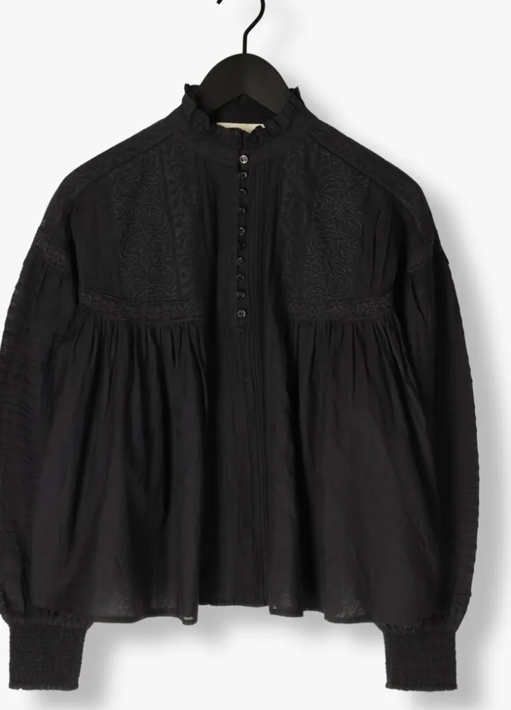 Ontdek de veelzijdigheid van de zwarte DAHILA blouse van VANESSA BRUNO. Deze elegante blouse is perfect voor een dag op kantoor of een avondje uit met vriendinnen. Combineer met een stijlvolle pantalon voor een professionele look of draag ‘m met een trendy jeans voor een casual-chique uitstraling. De subtiele details en verfijnde snit maken deze blouse een must-have in elke damesgarderobe. Voel je zelfverzekerd en comfortabel, ongeacht de gelegenheid. Laat je inspireren door de tijdloze charme van zwart en voeg een vleugje klasse toe aan je outfit met de DAHILA blouse.