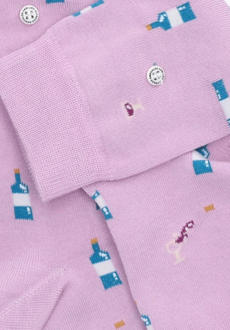 Simpelweg gezegd zijn kwaliteit, stijl en authenciteit de kernwaarden van het merk Alfredo Gonzales. Maar als je naar de mooie producten uit de collectie kijkt zal je zien dat er geen enkele moeite bespaard is gebleven bij het maken van deze creatieve uitingen in de vorm van sokken. De WINE sokken zijn uitgevoerd in paars textiel met een print van verschillende wijnflessen-en glazen. Elk paar Alfredo Gonzales sokken zijn voorzien van een trademark button waardoor ze niet alleen herkenbaar zijn maar wat tevens zorgt voor een prachtig klein detail als toevoeging van elke outfit. Samenstelling van de sokken: 78% katoen, 18% nylon en 4% lycra.