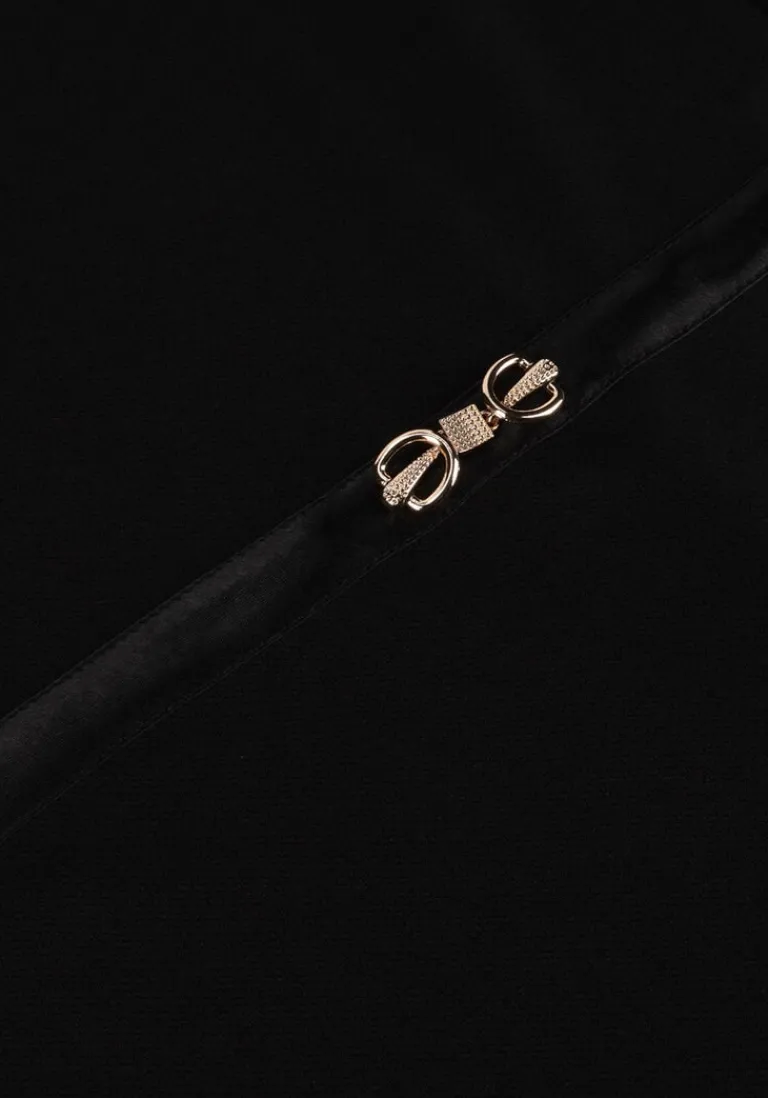 Stap stijlvol de deur uit met de zwarte mini jurk A DRESS 040855 van ANA ALCAZAR. Perfect voor een avondje uit of een chique diner. Combineer met een paar elegante hakken en een leren jasje voor een complete look. De jurk accentueert je figuur en biedt een verfijnde uitstraling. De subtiele details op de satijnen band en de hoogwaardige stof zorgen voor een luxe gevoel. Draag met zelfvertrouwen en straal in elke situatie. Deze jurk is een must-have voor elke garderobe en past moeiteloos bij diverse accessoires. Voeg een statement ketting toe voor een extra touch of glamour.
