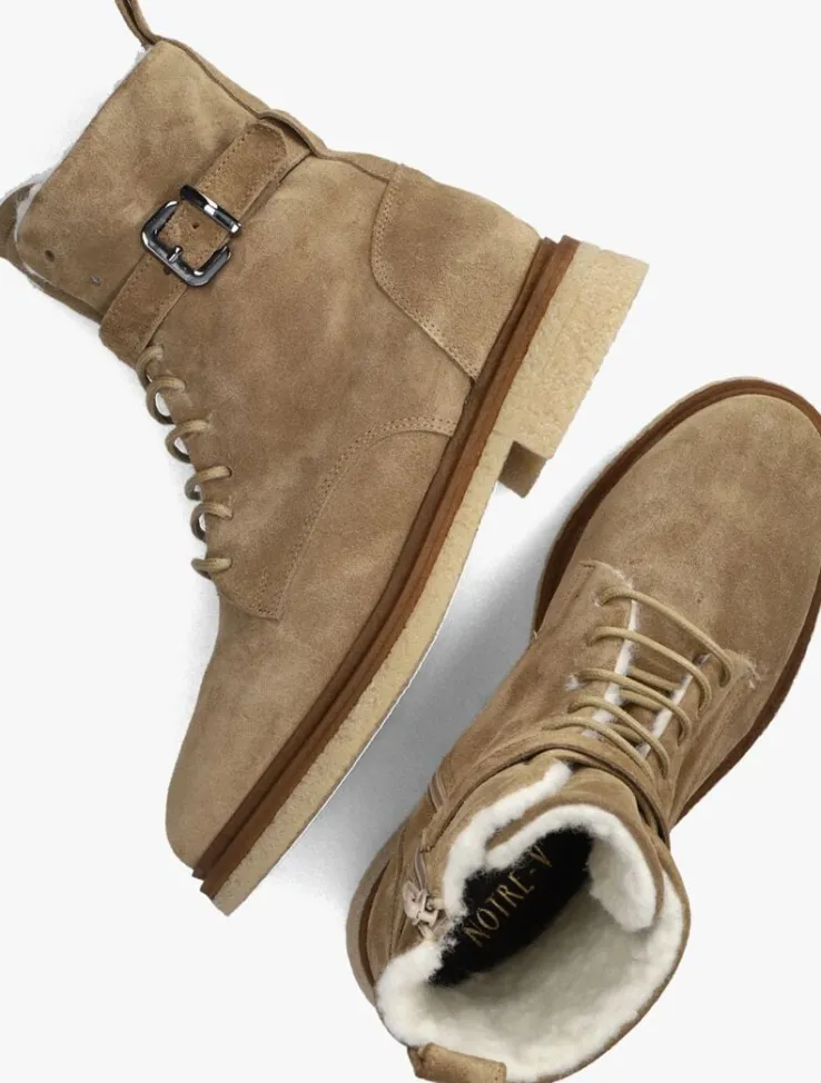 Met deze beige enkelboots 07-337van NOTRE-V ben jij helemaal on-trend! Gemaakt van suède en met een schachthoogte van 16 centimeter, zijn deze boots perfect voor de modebewuste dame. Het bovenwerk is voorzien van fraai stikwerk, een siergesp en heeft veters van gewaxt katoen. Dankzij de rits aan de zijkant zijn ze gemakkelijk aan en uit te trekken. Het binnenwerk is gevoerd met faux fur, waardoor je voeten heerlijk warm blijven. De bruine zoolrand maakt dit model net wat unieker en de spekzool zorgt voor een finishing touch. De rubberen zool zorgt voor een goede grip. Combineer deze enkelboots met een stoere jeans en een oversized trui voor een trendy look. Of draag ze onder een jurkje voor een edgy twist.