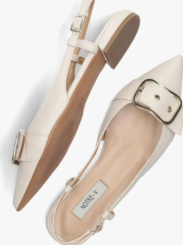 Stap in stijl met deze elegante beige slingbacks van NOTRE-V. Het bovenwerk bestaat uit leer en de voorvoet is voorzien van een grote siergesp. Met een puntige neus en gespsluiting zijn deze schoenen perfect voor een chique look. De leren binnenkant zorgt voor comfort, terwijl de rubberen zool grip biedt. Combineer deze slingbacks met een mooie zomerjurk voor een verfijnde uitstraling, of draag ze onder een nette broek voor een zakelijke look. Of je nu naar een feestje gaat of naar kantoor, met deze schoenen zie je er altijd stijlvol uit.