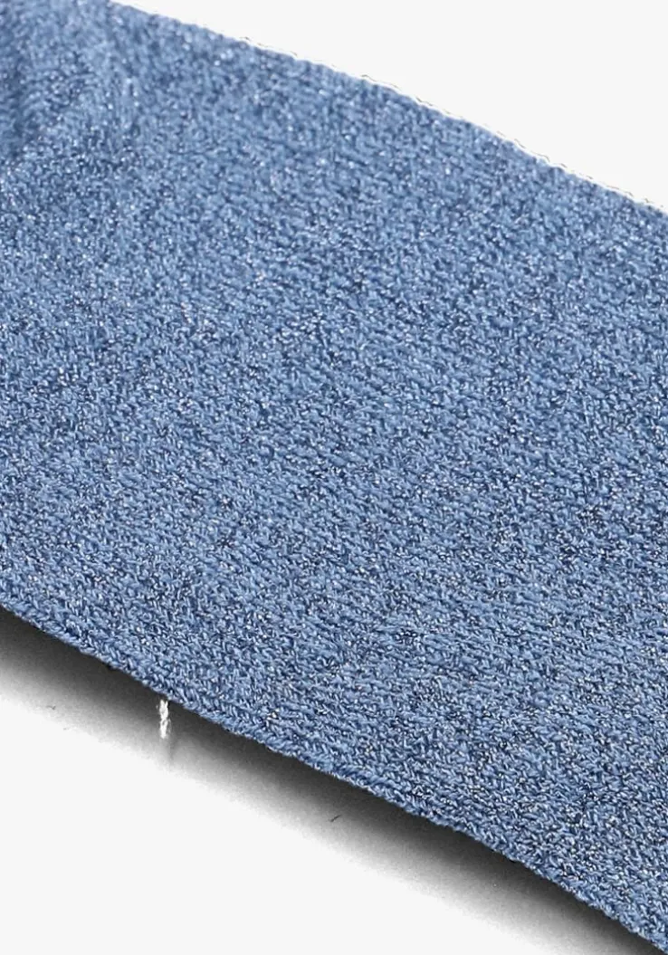 Deze leuke blauwe glittersokken zijn gemaakt van 60% polyester, 32% metallic, 5% katoen en 3% elastaan.