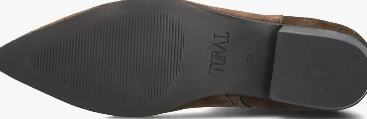 Maak kennis met de BELINDA enkellaarzen van TORAL. Deze bruine suéde beauties zijn een must-have voor elke stijlvolle dame. Perfect voor een dagje shoppen in de stad of een avondje uit met vriendinnen. Combineer ze moeiteloos met een strakke jeans of een elegante rok voor een chique look. De zijkant is afgewerkt met een goudkleurig merkembleem. De hoogwaardige suéde buitenkant zorgt voor een luxe uitstraling en langdurig draagcomfort. Voeg een vleugje klasse toe aan je garderobe met deze veelzijdige enkellaarzen.