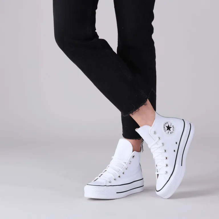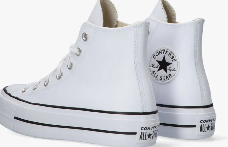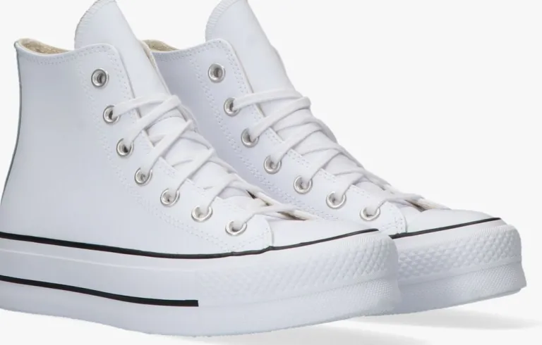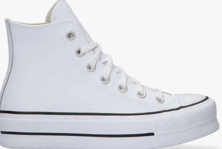 Zoek het hogerop met de dubbel zo dikke zool van de CHUCK TAYLOR ALLSTARLIFT HIvan het bekende schoenenmerk Converse All Star! Deze witte hogeplatformsneaker is perfect om jouw persoonlijke stijl mee te laten zien en is eindeloos te combineren bij al jouw zomerse outfits. De rubberen neus en stootrand geven deze schoen de kenmerkende Converse-look. De schoen is uitgevoerd in leer met een canvas voering, een vast voetbed en een rubberen zool van 3,5 cm dik. Maatadvies: dit model valt een halve maat groter uit.