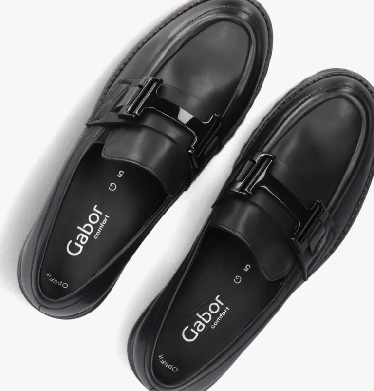 Stap stijlvol de dag in met de zwarte leren loafers van GABOR, model 452. Deze elegante schoenen met ronde neus en chunky zool bieden comfort en klasse. Het uitneembare voetbed en de leren binnenkant zorgen voor een perfecte pasvorm. Ideaal voor een dag op kantoor of een ontspannen lunch met vriendinnen. Combineer ze moeiteloos met een nette pantalon of een casual jeans voor een veelzijdige look. De rubberen zool geeft je de grip die je nodig hebt, terwijl het tijdloze design je outfit compleet maakt.