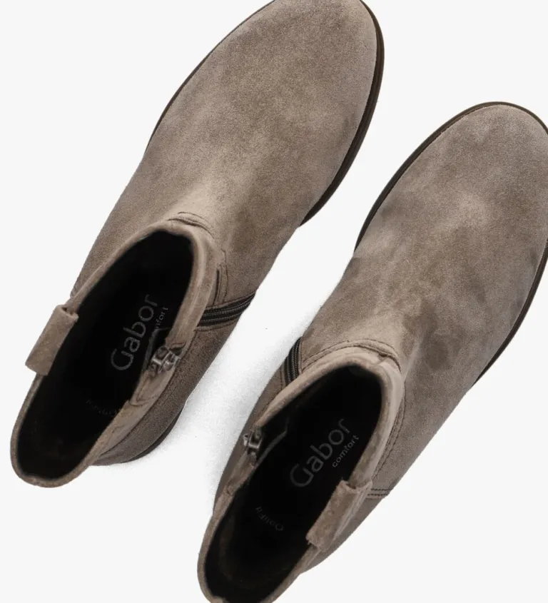 Stap stijlvol de dag in met deze taupe kleurige enkellaarzen, model 790.1 van GABOR. Gemaakt van hoogwaardig suède, zowel aan de buiten- als binnenkant, bieden deze laarzen ultiem comfort dankzij het uitneembare voetbed. De ronde neus en de blokhak van 3 cm zorgen voor een elegante uitstraling. De rits aan de zijkant maakt het aan- en uittrekken eenvoudig. Perfect voor een dag op kantoor of een gezellige lunch met vriendinnen. Combineer ze met een strakke jeans of een stijlvolle rok voor een complete look. De rubberen zool zorgt voor grip en duurzaamheid, ideaal voor elke gelegenheid.