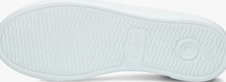Deze witte lage sneaker 465komt uit de Comfort collectie van het merk GABOR. Comfort schoenen hebben meer volume bij de tenen en bij de bal van de voet en bieden voor iedere voet de noodzakelijke ruimte. Dit model is uitgevoerd in leer en is afgewerkt met goudkleurigeaccenten, de rits, de metalen veter ringentjes en het inzet stuk op de hiel. De binnenvoering is een combinatie van suède en badstof en het voetbed is uitneembaar. Met de handige ritslangs de veterklep trek je ‘m makkelijk aan en uit. De schoen heeft een plateau zool van 4 centimeter dik met een gestreept reliëf op de zijkant en stootranden van reliëf rondom de neus en hiel. Dit model is gemakkelijk te combineren met een stoere jeans.