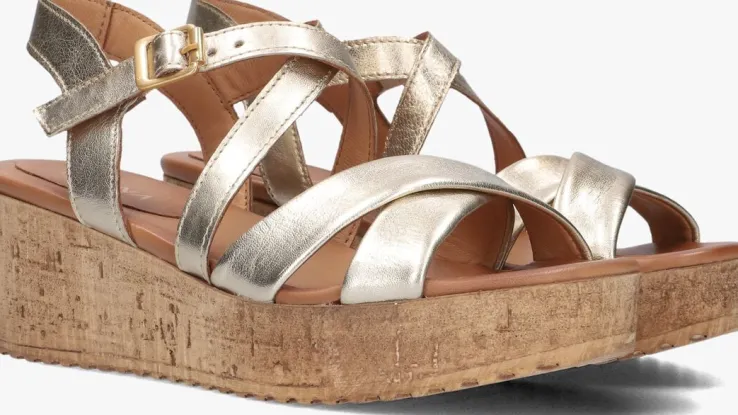 Stap in stijl met deze prachtige goudkleurige sandalen van AYANA. Het bovenwerk bestaat uit leer en heeft smalle bandjes over het gehele bovenwerk. De ronde neus en plateauzool zorgen voor een trendy look, terwijl het comfortabele leer aan de binnenkant je de hele dag door laat lopen. Met de gespsluiting blijven ze stevig om je voeten zitten, perfect voor een dagje shoppen of een zomerse wandeling. Combineer deze sandalen met een luchtige zomerjurk of een trendy jeans voor een complete look. Met de sandalen ben je klaar voor elke gelegenheid.