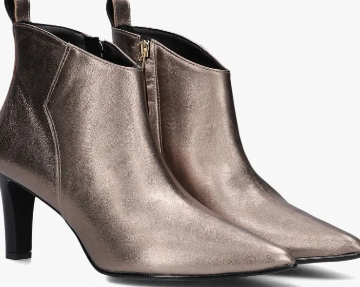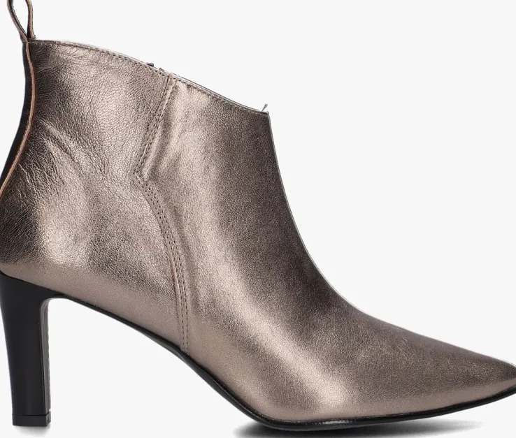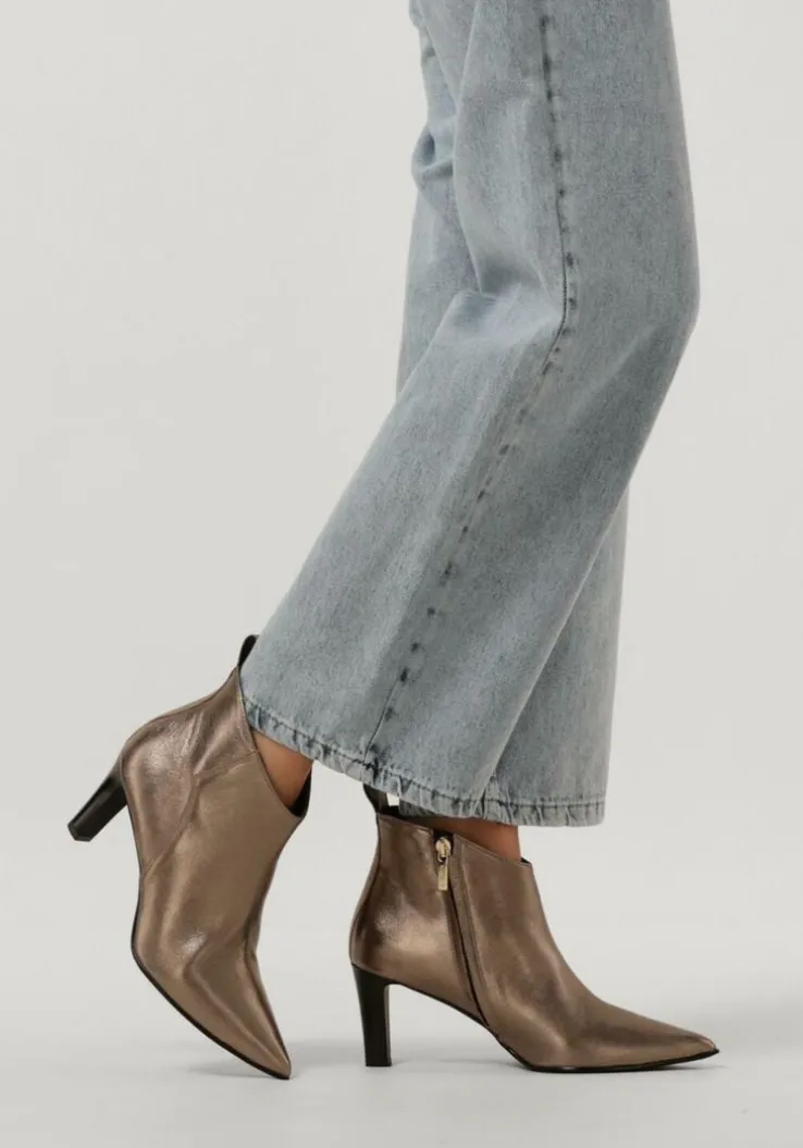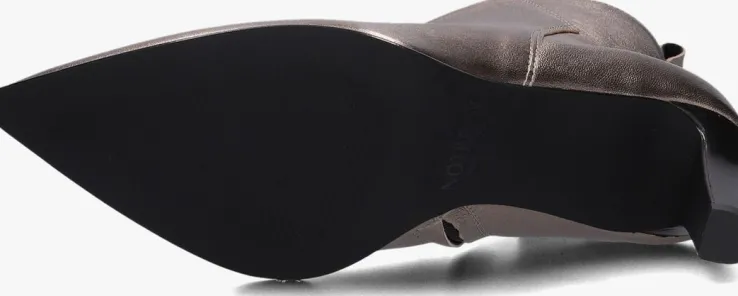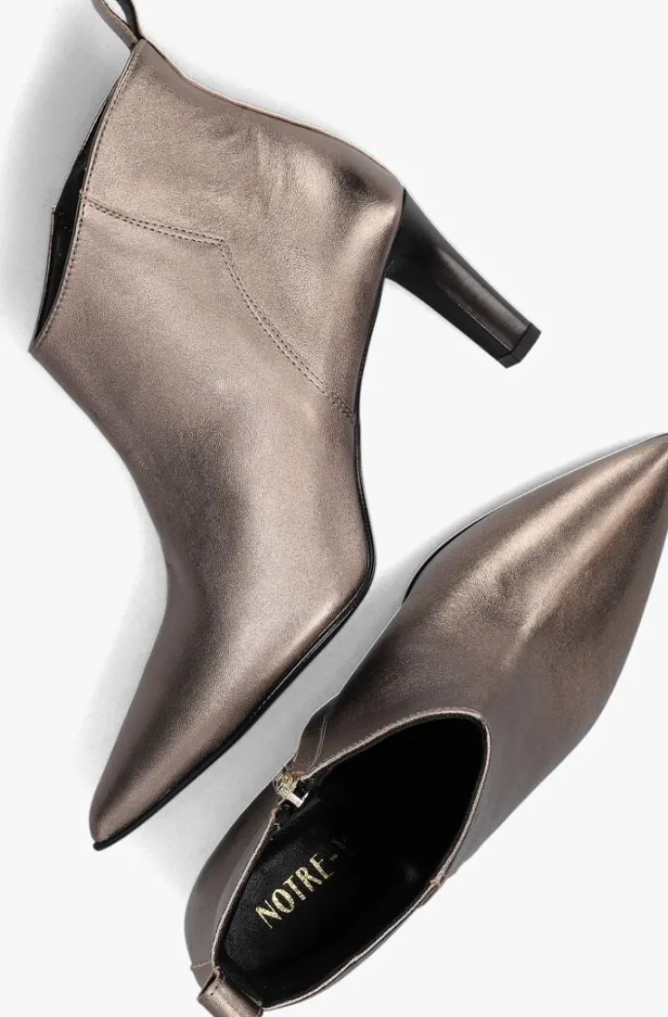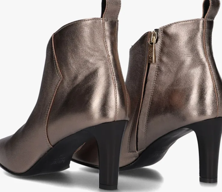 De Italiaanse ontwerpen van het merk NOTRE-V zijn er voor de verfijnde vrouw die er graag effortless chic uitziet. Dit enkellaarsje 38238 met subtiele accenten maakt jouw look compleet! Hij is gemaakt van goudkleurig leer, heeft een spitse neus én een elegante smalle hak van 7,5 centimeter hoog. Leuk detail is de aantreklus op de achterkant van de schacht en het merkreliëf op de goudkleurige rits. De schoen is leer gevoerd en heeft een vast voetbed met demping voor comfort. De schachthoogte is 11 centimeter, gemeten bij maat 38. Draag deze stijlvolle laarsjes onder een jeans of jurk en je bent helemaal klaar voor een nieuwe, mooie dag!